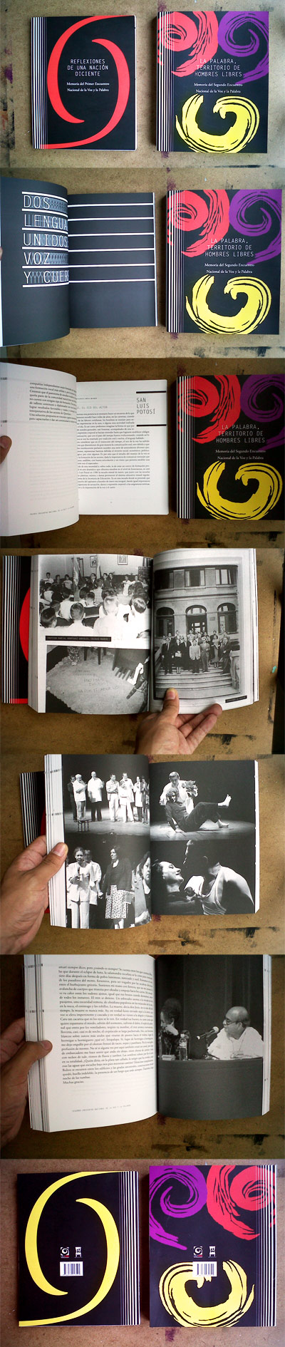 Por dos años consecutivos hemos hecho la memoria del Centro de Estudios para el Uso de la Voz S.C. (CEUVOZ) coeditado (y coordinado editorialmente) por los amigos de Libros de Godot. Es interesante el caso por dos cosas: 1) la vigencia del diseño en proyectos anuales con las dosis de mutación de usos y costumbres: añadir estilos editoriales o en su defecto dotar a un estilo de más significantes; para que el sistema se sostenga requiere coherencia 2) interpretar la obra de otros, las portadas se basan en la gráfica del poster que no hago yo y que no puedo predecir pero que requiere adaptarse para que la memoria año con año se hermane.